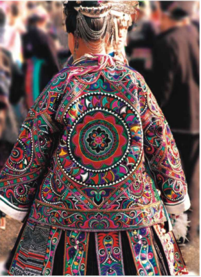 周朝晖表示,苗绣的图案追求“和”的原则,注重“天地人合一”,万事万物以一种最为和谐的状态共同生长,共同繁荣;追求“美”的原则,并具备现代设计里纹样的抽象、生动、趣味、变形、打散重构等变化形式,在构图上也已具备适合、秩序、节奏、韵律、均衡等形式美法则;追求“善”的原则,苗绣里呈现出来的万事万物,都是以一种拙朴的、友善的、可爱的形态出现,生动有趣;追求“平等”的原则,苗绣里的龙凤图案、黄色等帝王的专属物,所有苗族人都可以穿在身上的,没有高低贵贱之分。