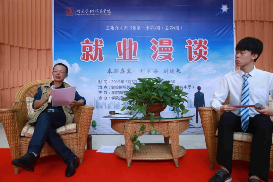 6月5日中午,学院“真人图书馆”第9期在实验剧院一楼大厅举行,本期主题为“就业漫谈”,主讲嘉宾是学院副院长刘家海。副院长周文清、副院长黄新平到场聆听。时值“毕业季”,本期“真人图书馆”吸引了许多同学前来,现场座无虚席。
