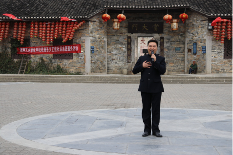 活动第一站来到了有“天下第一村”之称的全国重点文物保护单位、中国历史文化名村张谷英村。在该村露天广场,戏剧系师生现场表演了精彩的文艺节目。唐蓉青和华子琦两位老师担任主持,陈华霖同学演唱花鼓戏选段《甜滋滋的梦》浸润人心,姚广老师竹笛独奏《牧民新歌》声声悦耳,江慧和谭卫两位老师的双人舞《遇·见》细腻动人,李亚琪老师独舞《芙蓉雨》古典柔美,陶乐老师花鼓戏独唱《中秋调》欢乐祥和,陈奇老师戏曲表演《天官赐福》寓意吉祥,特聘教授、音乐系副主任袁双洋深情款款的独唱《父亲》为整场演出画上圆满句号。精彩的演出吸引了大批群众前来观看,掌声叫好声连绵不绝。