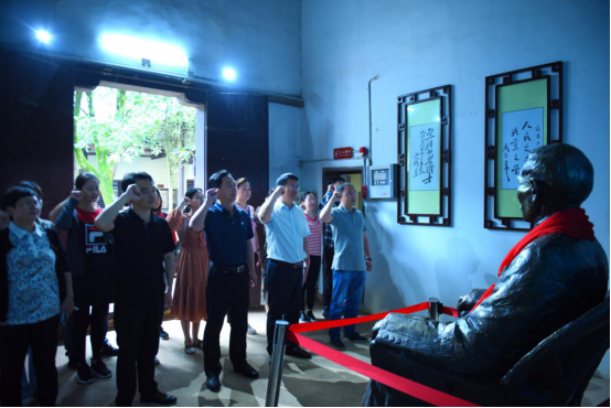 在实地参观学习环节,王章华、余会春、黄新平同志带领支部全体党员及入党积极分子一同前往省级爱国主义教育基地,市、县党员党性教育基地——徐特立同志故居。