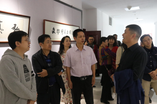在听取学院“三馆”建设基本情况及特色亮点经验介绍之后,廖建威一行高度赞赏学院的办馆成效,认为湖艺图书馆小而精,艺术特色鲜明,令人印象深刻。