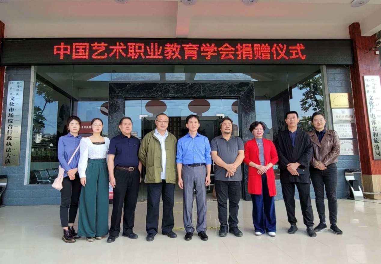 10月13日,中国艺术职业教育学会在文化和旅游部重点帮扶点——广西壮族自治区巴马瑶族自治县,举行“绿水青山,金色乡愁”全国艺术职业教育美术基础教学速写作品捐赠的首站活动。中国艺术职业教育学会副会长兼秘书长、中央美术学院教授孙伟,巴马瑶族自治县县委常委、文旅部挂职巴马县人民政府副县长蔡山帝等领导出席捐赠仪式。我院美术系党支部书记邹德强、专业教师蔡秋霞参加了仪式,蔡秋霞老师还作为作品捐赠教师代表发言。