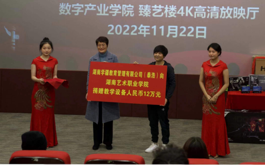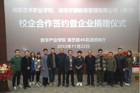 11月22日上午,学院在臻艺楼4K放映厅举行与湖南学疆教育管理有限公司(泰浩)的校企合作签约暨企业捐赠仪式。湖南学疆教育管理有限公司董事长陈婷,泰浩传媒公司股东周晓明、孙婵,新利指定网站官网网页版入口党委书记王章华出席活动。数字产业学院、总务基建处、教务处(实训处)、发展规划处相关负责人与师生代表共同参加了本次活动。