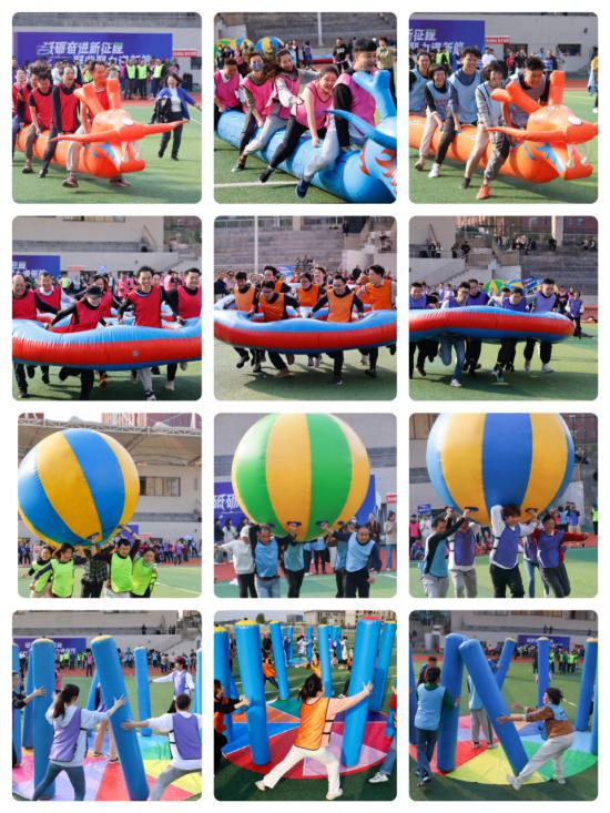此次趣味运动会由龙行天下、八仙过海、鸿运当头、火炬传递四大模块组成,全校12个分工会共237名教职工参与比赛角逐。