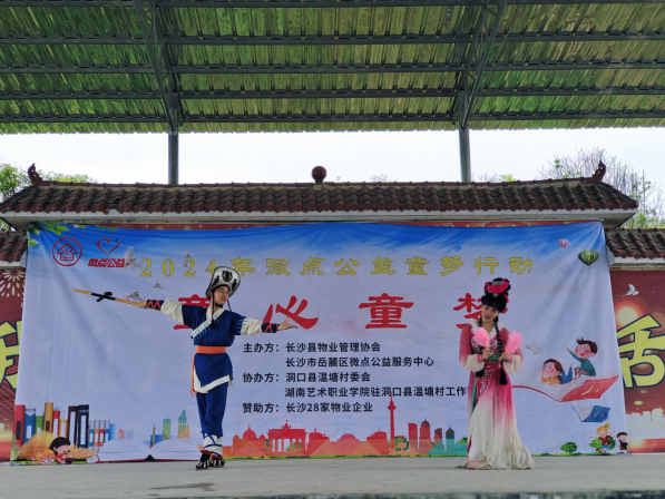 在活动中,新利指定网站官网网页版入口师生团队还和微点公益服务中心共同带来精彩节目京胡演奏《迎春》、花鼓戏《刘海砍樵-比古调》和手语舞《让爱传出去》。同时,温塘村的孩子们也用诗朗诵《我有一个梦想》表达了对爱心企业、爱心人士及志愿者的真诚感谢。温塘小学校长卿建国作代表向长沙县物业管理行业协会、长沙市岳麓区微点公益服务中心赠送锦旗。