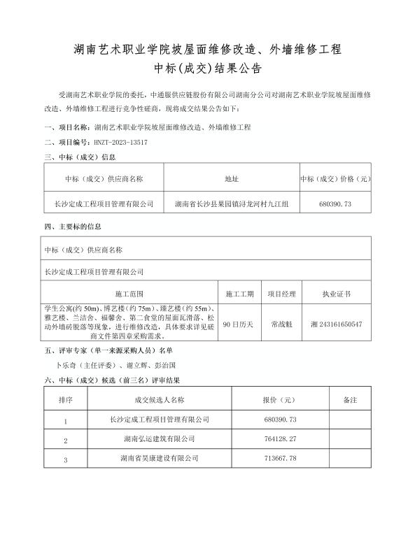 新利指定网站官网网页版入口坡屋面维修改造、外墙维修工程中标(成交)结果公告