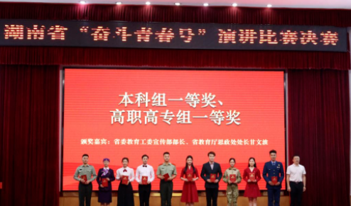 为深入学习贯彻习近平新时代中国特色社会主义思想,全面贯彻落实党的二十大精神,创新推进“大思政课”建设,5月21日下午,由湖南省委教育工委、省教育厅主办的湖南省“奋斗青春号”演讲比赛决赛在湖南农业大学举行。在林昆山、杨雁老师的指导下,我校2021级高职播音主持班张子豪同学从全省高校激烈的竞争中脱颖而出,凭借演讲作品《青春,朝着梦想的方向奔跑》斩获高职高专组一等奖第一名的好成绩。