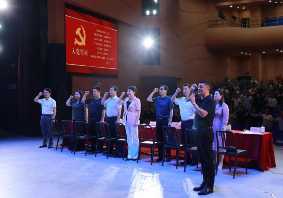 大会在雄壮的国歌声中拉开序幕。周文清同志领誓,全体同志一同重温了入党誓词。