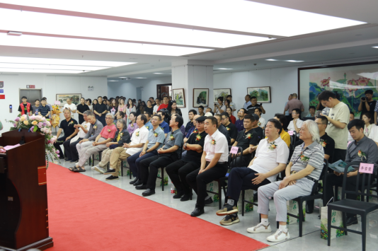 9月15日下午,纪念华中艺专(新利指定网站官网网页版入口前身)建校百年系列活动——“半山醒石”优秀校友范仲水墨画作品展在学校博艺楼七楼举办开幕式。
